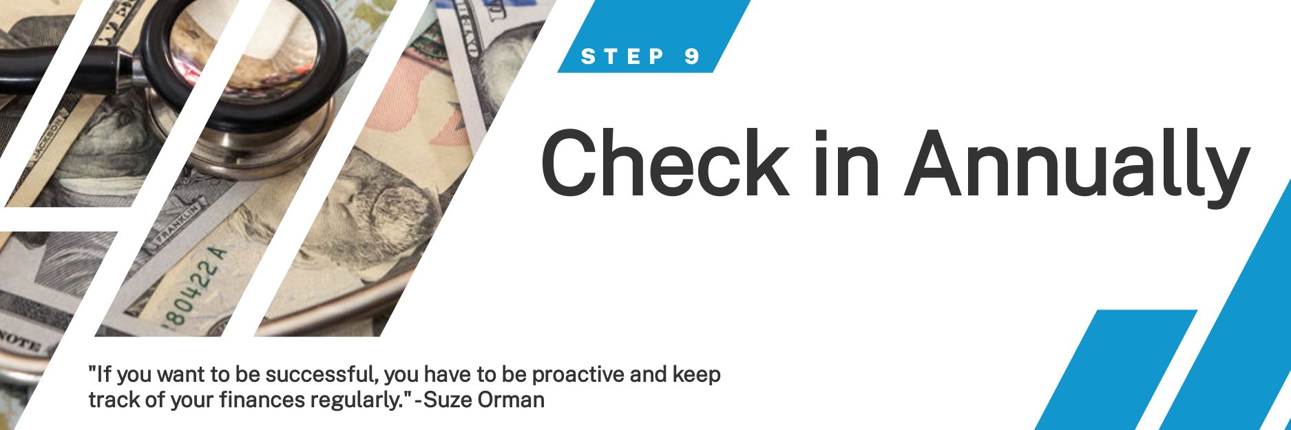 Financial planning is an ongoing process that requires regular check-ins and adjustments as your life circumstances change. Step 9 involves meeting with your financial professional on an annual basis to ensure that your financial plan remains aligned with your goals and objectives. During these check-ins, several items should be considered, including assumptions, income, expenses, expected social security benefits, investment and retirement accounts, insurance, and estate preservation.